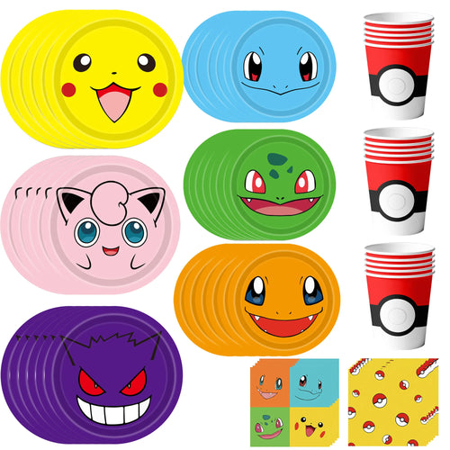 Pokemon Feier Kindergeburtstag Becher, Teller und Tuch Set (120 Stk.)