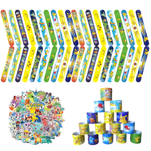 Pokemon Party Set - 50x Aufkleber und 40x Armbänder für Geburtstag, Feier, Deko, Kinder Spielzeug